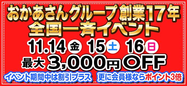 【最大3,000円引き!ポイント3倍!】おかあさんグループ創業17周年★全国13店舗合同イベントを開催!